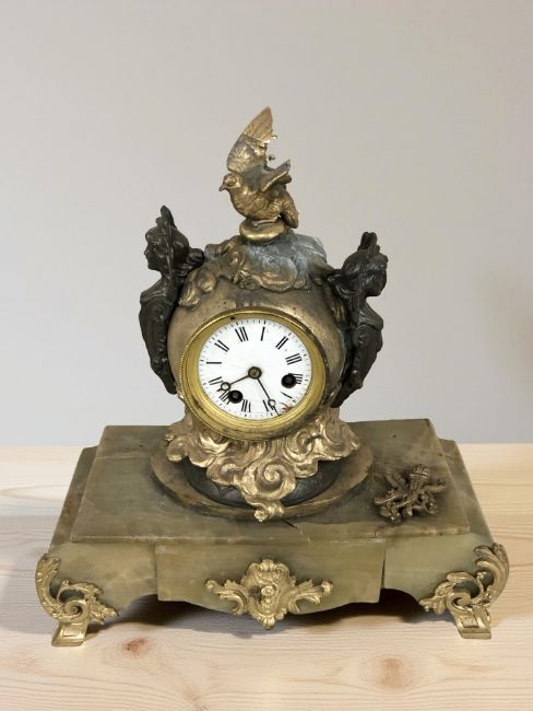 An onyx and gilt metal mantel clock, height 36 cm. (as found)
