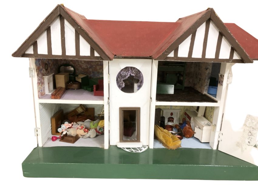 A mid-20th century Tri-Ang doll's house containing various furniture, width 66 cm.