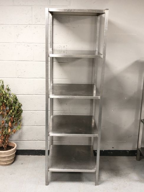 A commercial stainless steel five tier catering shelf, width 62 cm