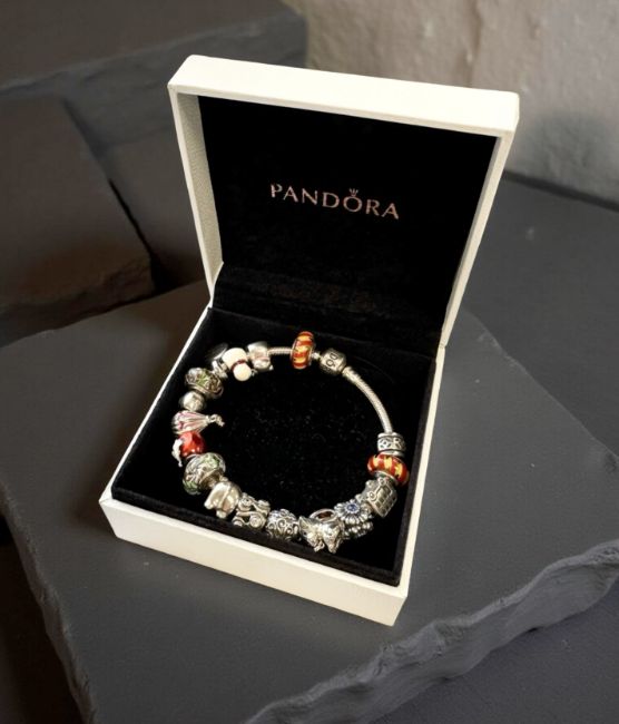 Pandora : A silver charm bracelet, length 20cm, boxed.