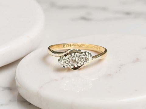 An 18ct gold and platinum diamond crossover ring, size J