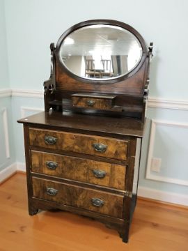 An Edwardian walnut mirror back dressing chest, 92 cm x 49 cm x 156 cm.