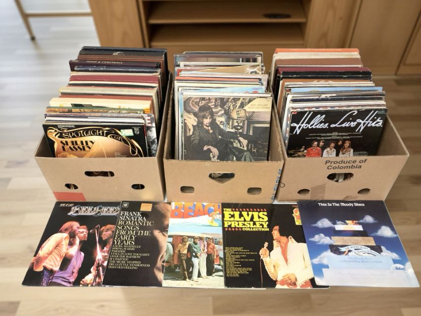 A large quantity of vinyl LPs and boxsets, ABBA, Sinatra, easy listening, various compilations, etc. (3 boxes)