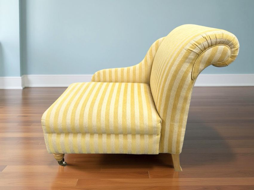 A contemporary chaise longue in striped yellow upholstery, length 107 cm