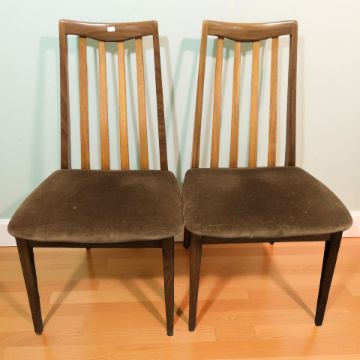 A G-Plan teak drop leaf extending dining table, and set of six chairs, table overall 137 cm x 91 cm x 73 cm