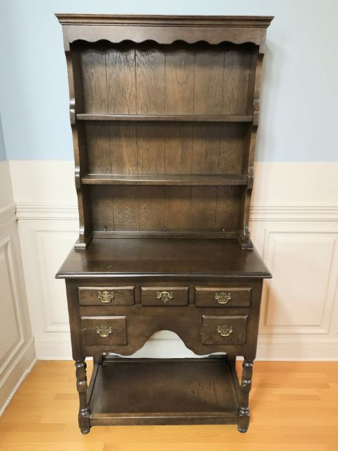 A reproduction oak dresser, 76 cm x 41 cm x 160 cm
