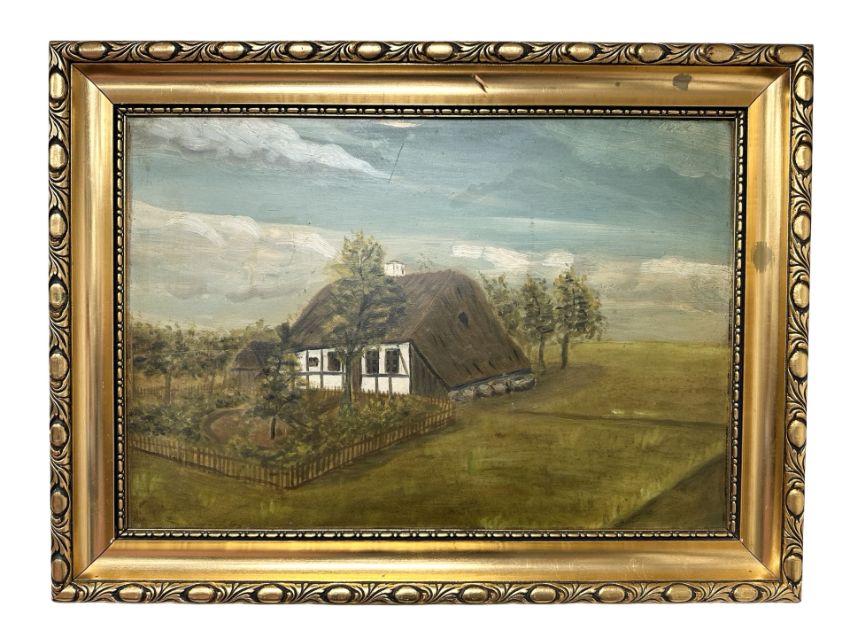 Danish School : A Thatched cottage, oil on board, 31 cm x 46 cm