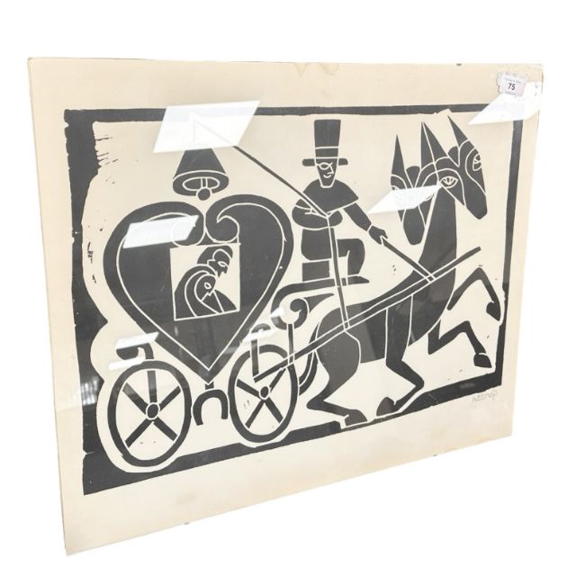 After Heerup : Figures in a horse drawn cart, monochrome print, 39 cm x 55 cm