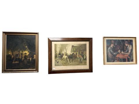 After Otto Bache : Horses by a cottage, colour print, 64 cm x 48 cm, together with three further continental pictures.