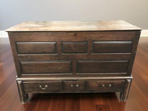 A Georgian oak mule chest, 140 cm x 56 cm x 96 cm
