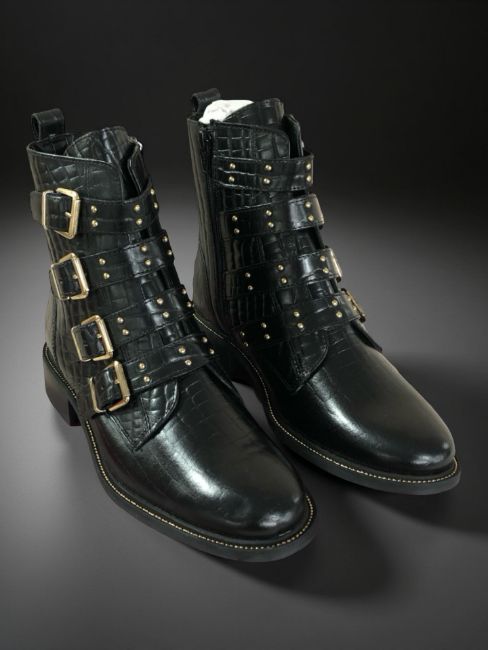 A pair of Carvela black / comb croc-print black leather ankle boots, size 38. (Brand new, in box)