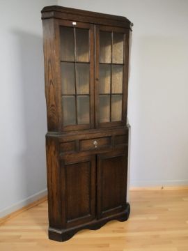 A 20th century glazed oak corner cabinet, height 182 cm.