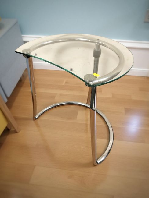 A contemporary glass and chrome lamp table, height 55 cm