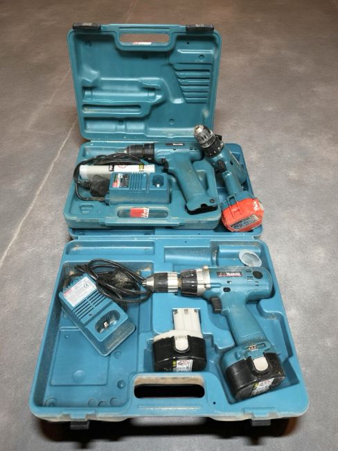 Three various Makita drills in boxes