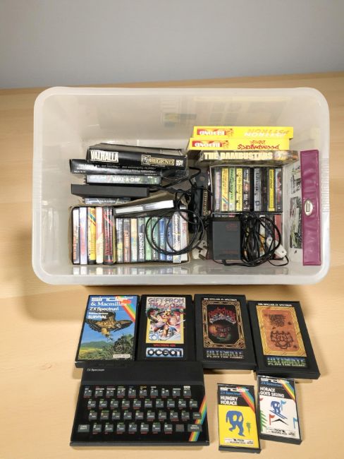 A Sinclair ZX Spectrum and assorted cassettes (one box)