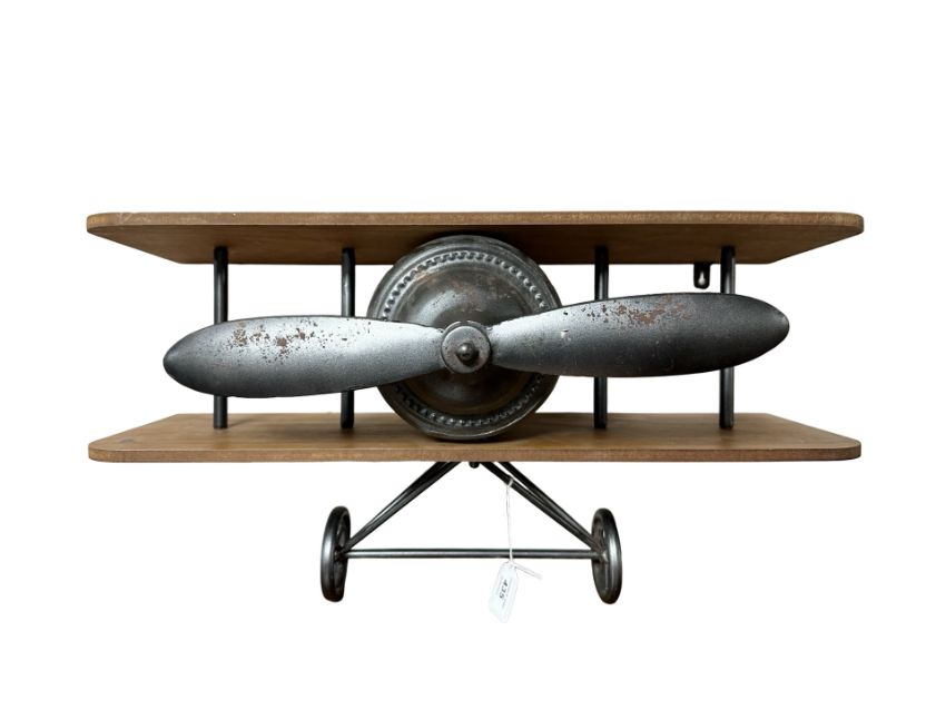 A contemporary wall shelf in the form of a bi-plane, width 60 cm.