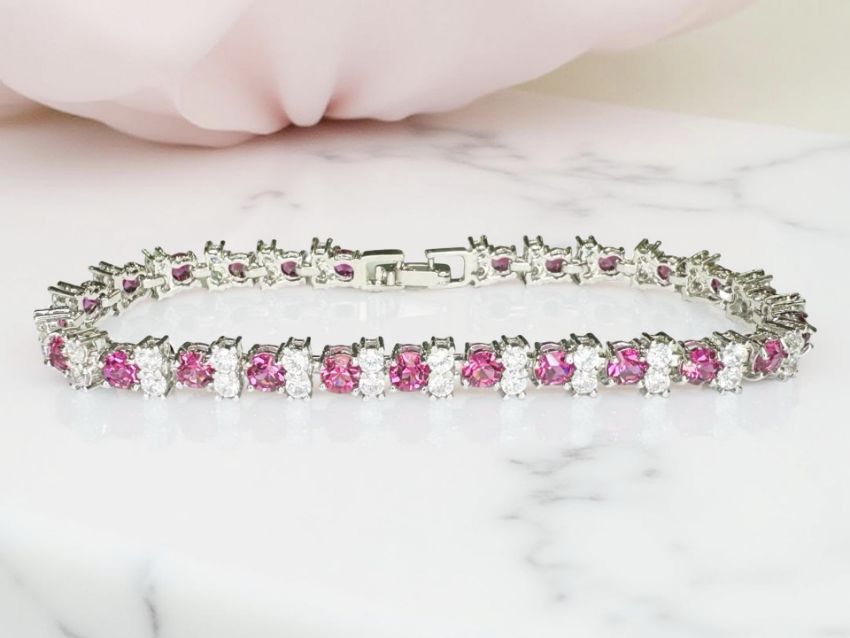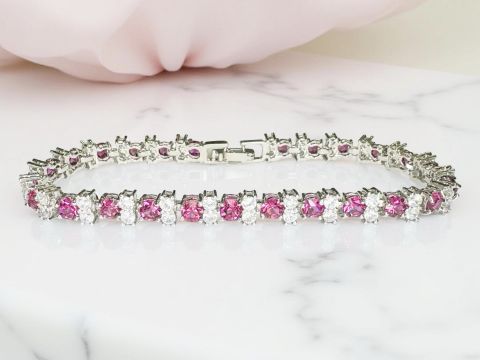 A silver and ruby line bracelet, length 18cm