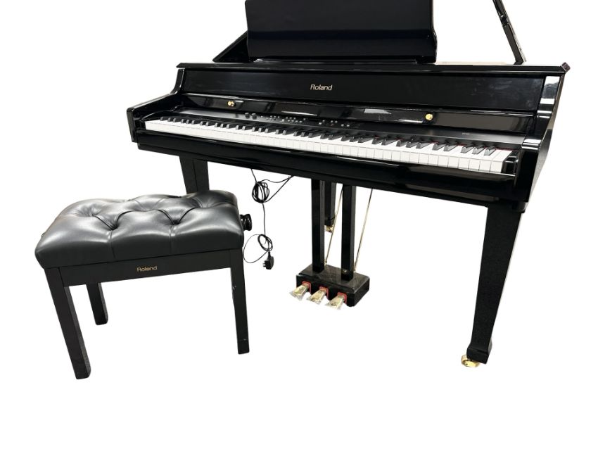 A Roland HP109 digital piano, together with adjustable stool, 136.5 cm width.