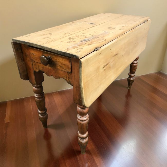 A Victorian pine drop leaf farmhouse table, length 106 cm.