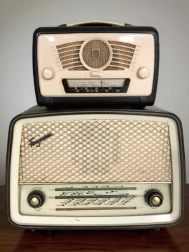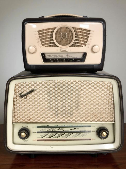 A Ferguson Bakelite-cased valve radio and a similar Ultra radio.