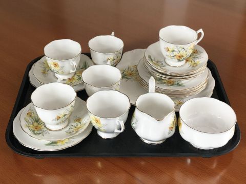 Twenty one pieces of Royal Albert Friendship Daffodil tea china.