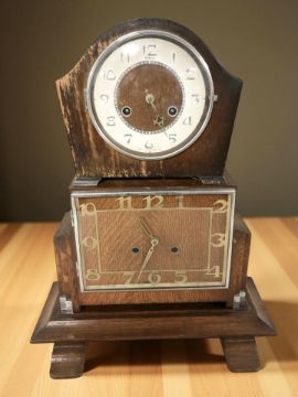 Two oak Art Deco mantel clocks, tallest 27 cm