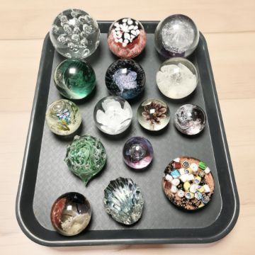 A collection of glass paperweights including Murano, Caithness, etc.