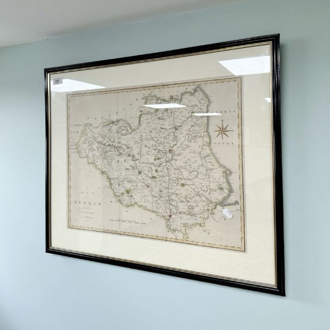 John Carey (1754 - 1835) : A Map of Durham from the best Authoritiers, hand coloured engraving, published by John Stockdale, London, 1805, 41 cm x 52 cm, framed.