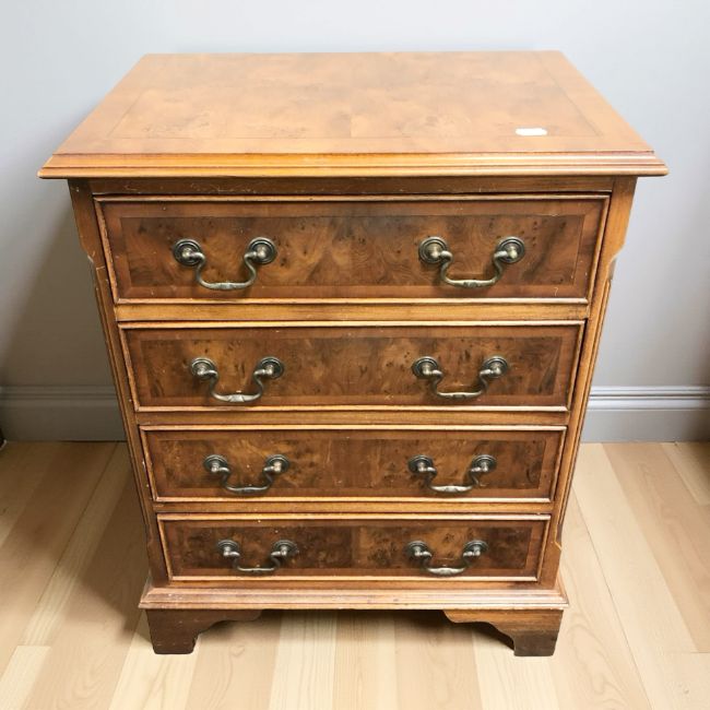 A small reproduction yew wood four drawer chest, width 49 cm.