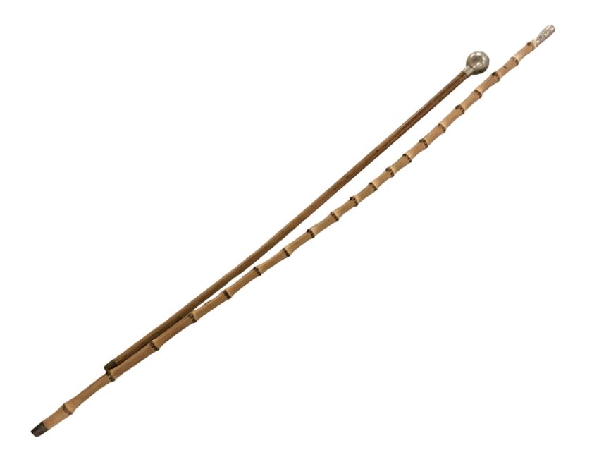 A Northumberland Fusiliers bamboo swagger stick and a further swagger stick.