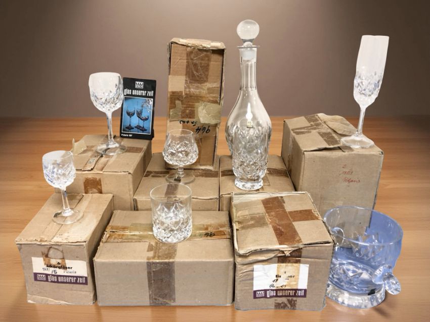 A group of Eisch crystal including various glasses, decanter, ice bucket etc