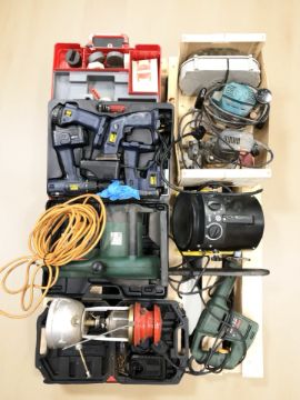 A quantity of power tools : Powercraft, Bosch, etc and an oil lamp (one pallet)