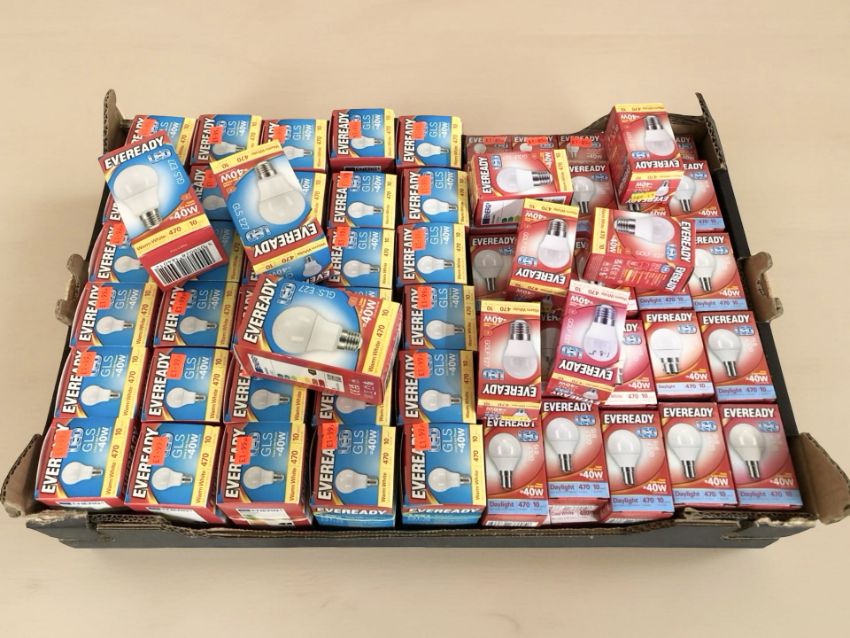 A large quantity of Everready light bulbs (1 box)