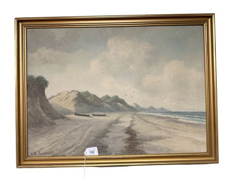 V Johansen : View across a beach, oil on canvas, 45 cm x 62 cm
