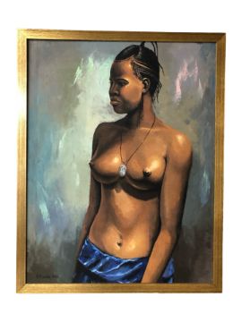 African School : Portrait of a bare chested woman, oil on canvas, 75 cm x 58 cm