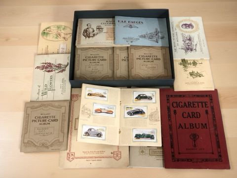 A collection of cigarette cards in albums