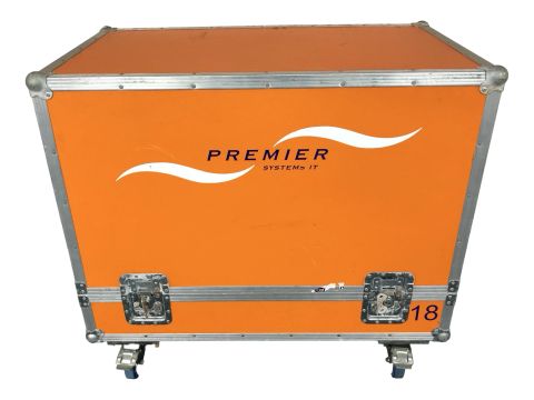 A Premier Systems flight case on castors, width 100 cm