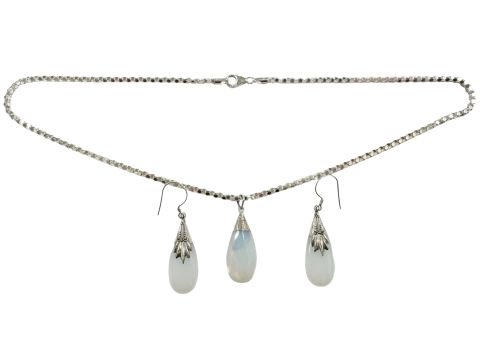 A Sterling silver necklace with simulated opal pendant and matching pair of earrings