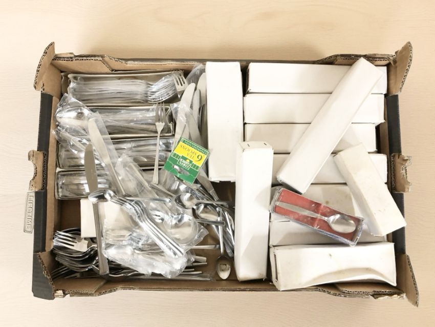 A collection of Silver Knight stainless steel cutlery (one box)