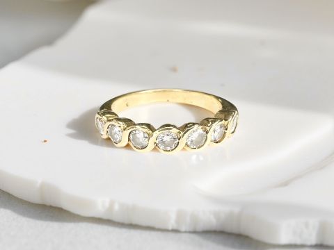 An 18ct gold diamond half eternity ring, approximately 0.45 carat. size K