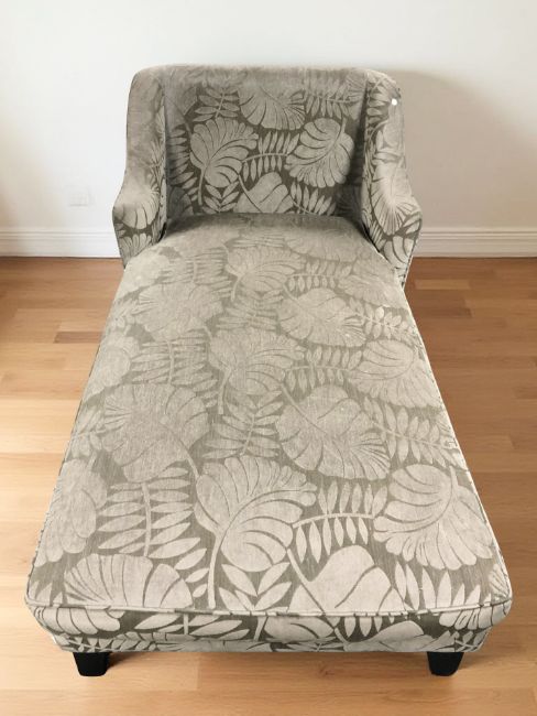 A modern chaise longue in floral fabric, length 163 cm