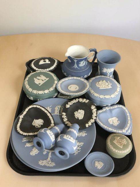 A collection of Wedgwood Jasperware in various colours