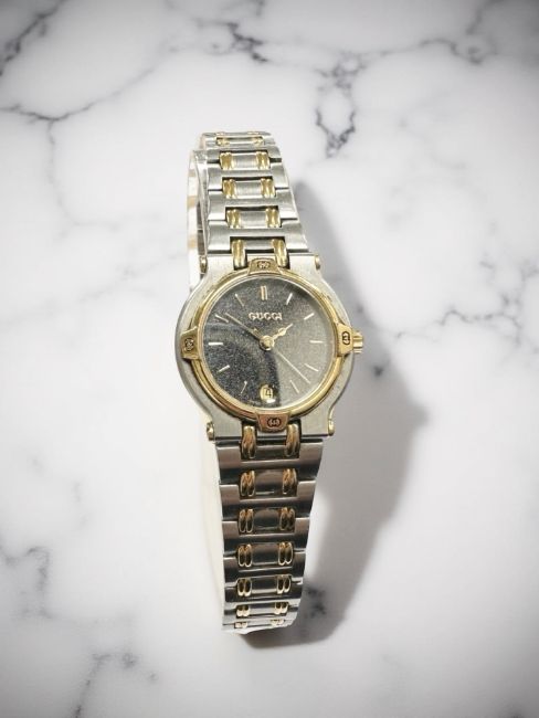 A lady's stainless steel and gold-plated Gucci quartz wristwatch, case 25mm