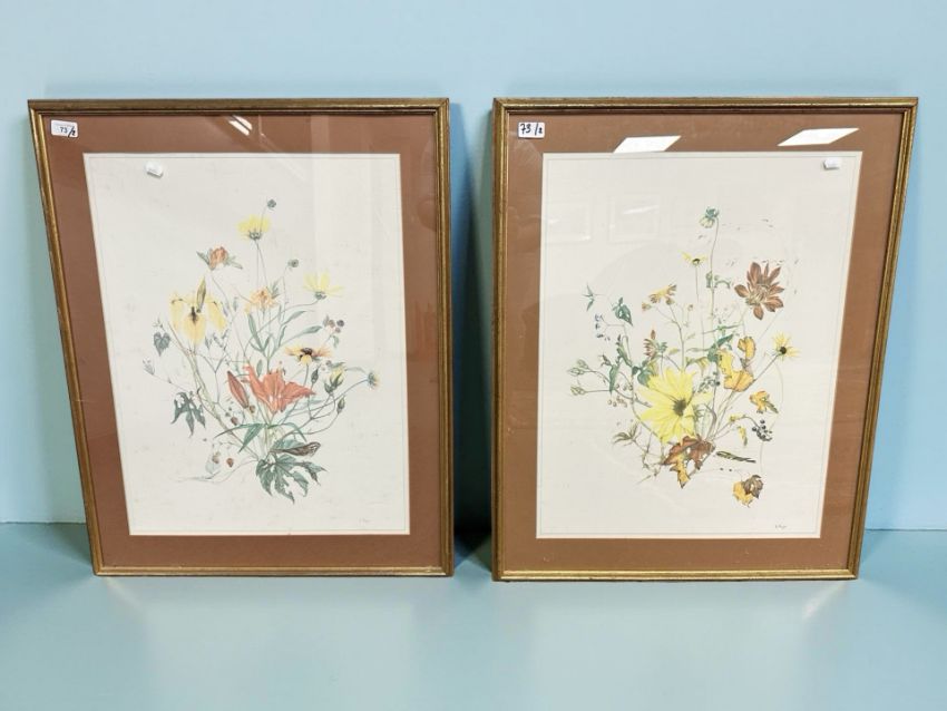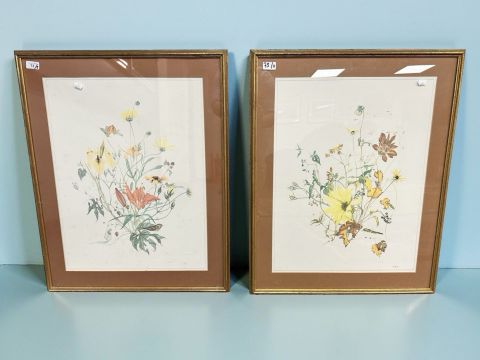 After Cynthia Augeri (American, born 1946) : Autumn Flowers, reproduction in colours, 62 cm x 46 cm, together with the companion piece, framed as a pair. (2)