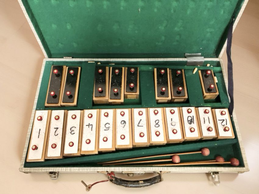 A vintage xylophone. (box as found)