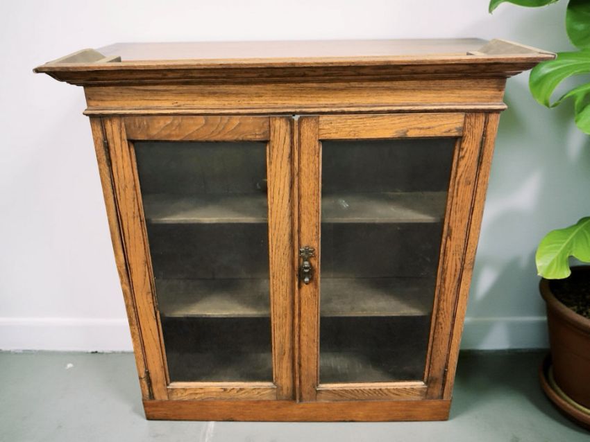 An early 20th century glazed oak bookcase top, width 92 cm