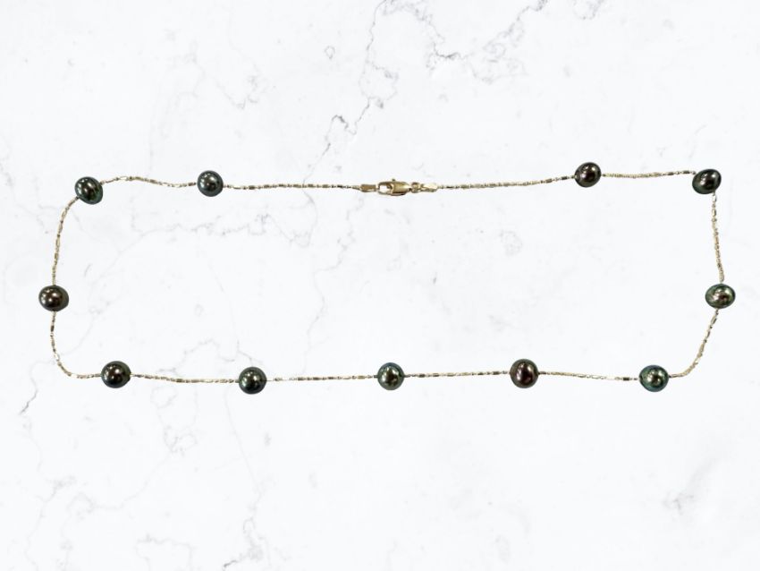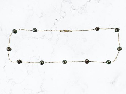 A gold and cultured pearl necklace stamped 14K, length 40cm