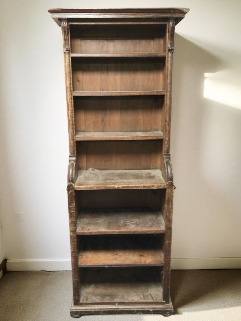 A 19th century oak and pine open bookcase, 74 cm x 40 cm x 204 cm (as found)
