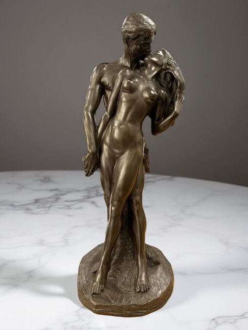 A Genesis Fine Arts bronzed-resin sculpture of two lovers, height 38cm