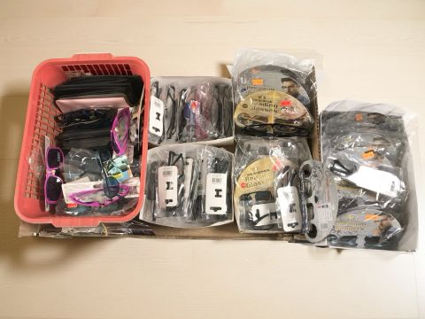 New sunglasses and glasses cases, reading glasses, etc. (1 box)